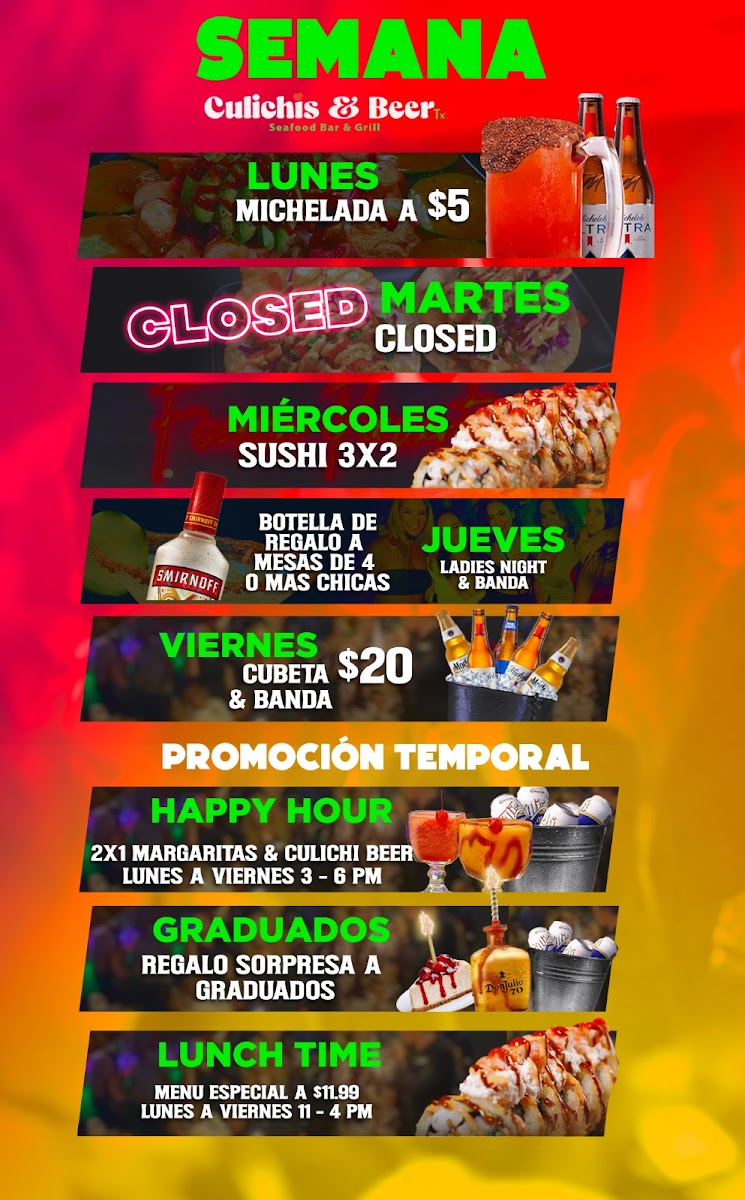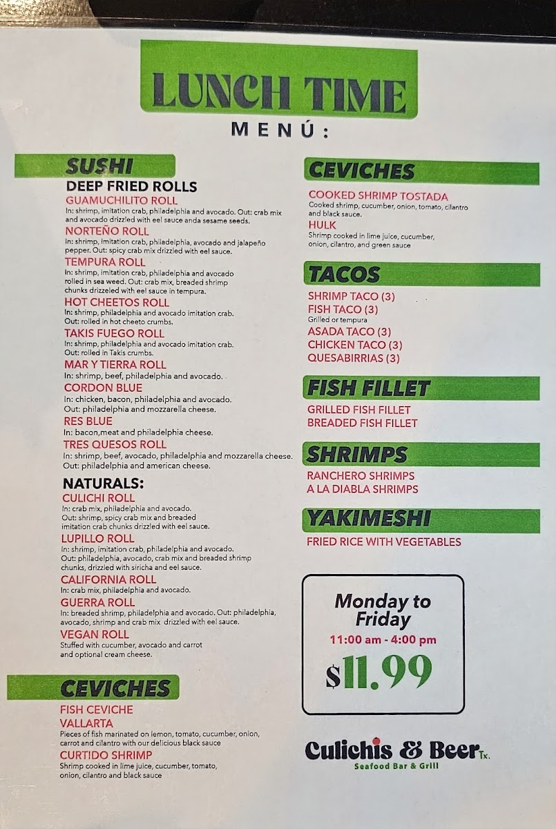 Introducing Culichis and Beer TX, a vibrant dining destination located at 7271 Wurzbach Rd, San Antonio, TX. This lively restaurant offers a unique menu that artfully combines traditional Mexican dishes with innovative sushi options, making it a go-to spot for food enthusiasts.